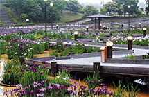 約4万本、約50種類の菖蒲が5月下旬から6月中旬までの間、白や紫の花を順々に咲かせます。園内には東屋、八つ橋を配し、近くから花菖蒲をゆっくりと観賞できます。毎年6月には「花しょうぶまつり」を開催。