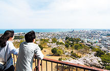 自然の地形をいかした日立市を代表する公園で、頂上から望む海のロケーションは抜群!「日本のさくら名所100選」にも選ばれた桜の名所であり、4月上旬~中旬には公園全体が桜の花で華やかに彩られます。