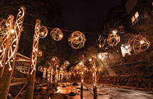 夕暮れから21時30分まで、あたたかい竹の明かりが黒川温泉を彩るイベント。