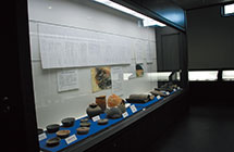 色麻町出身者の手による能面や陶磁器、記念切手のほか、町内の遺跡から出土した瓦や土器などの文化財も展示しています。