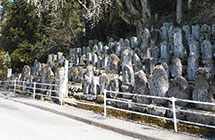 村道沿いに、左右に55体ずつの石仏の列“百体庚申(ひゃくたいこうしん)”があります。