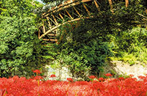巾着田を囲む高麗川に架かる歩行者専用の橋です。橋長91.2メートルで木製トラス構造の橋としては日本最大級の長さです。