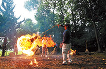 野神社境内で、麦わらの松明に点火しての「火振り祭り」です