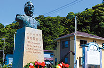 ペリー提督の胸像と、アメリカ海軍から寄贈された錨が飾られています。この記念碑は下田港を臨む「ペリー上陸記念公園」に設置されています。