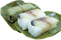 さばを使った押し寿司に、柿の葉の香りがうつり、風味を豊かにしています。